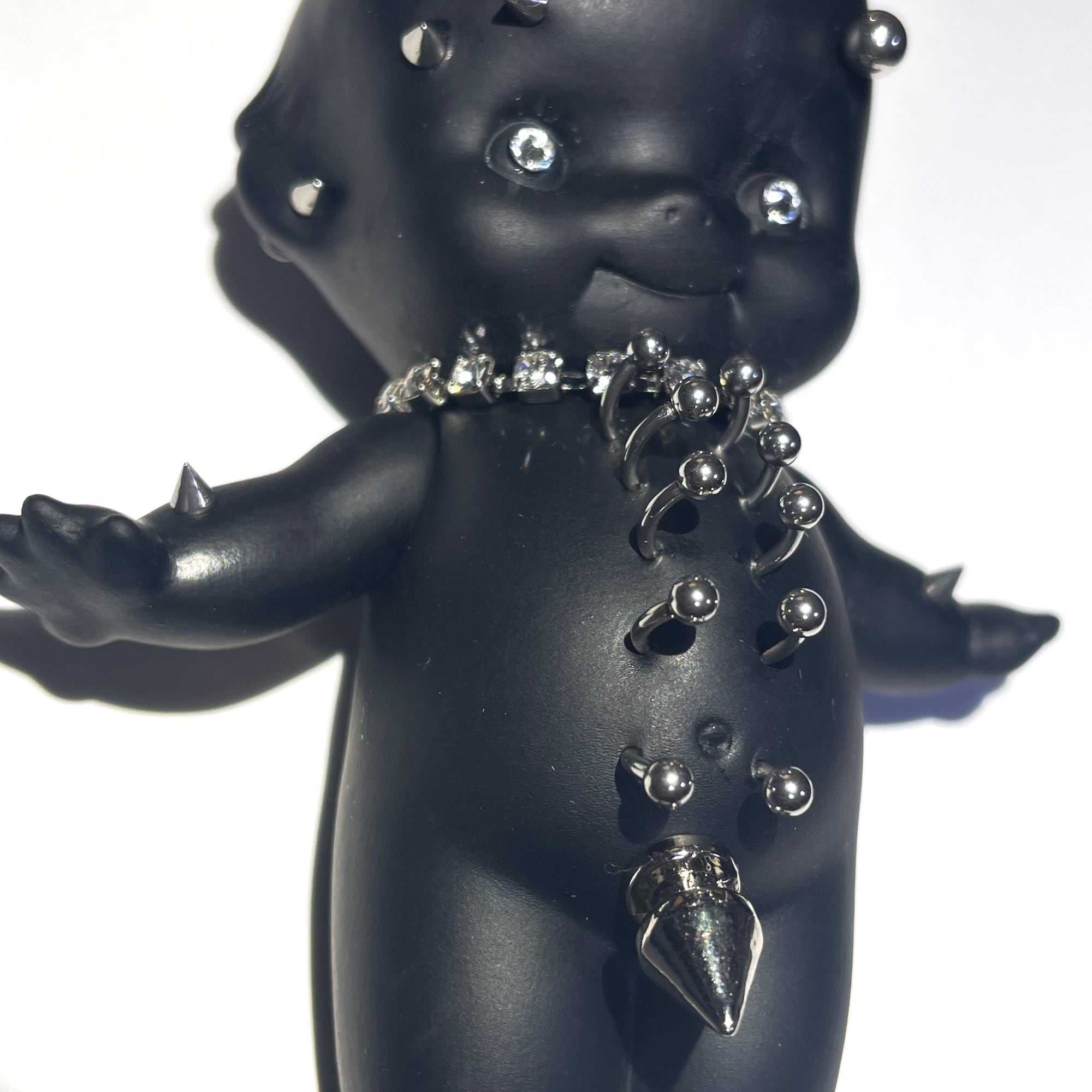 全身のボディピアスが特徴的なデザイン。
